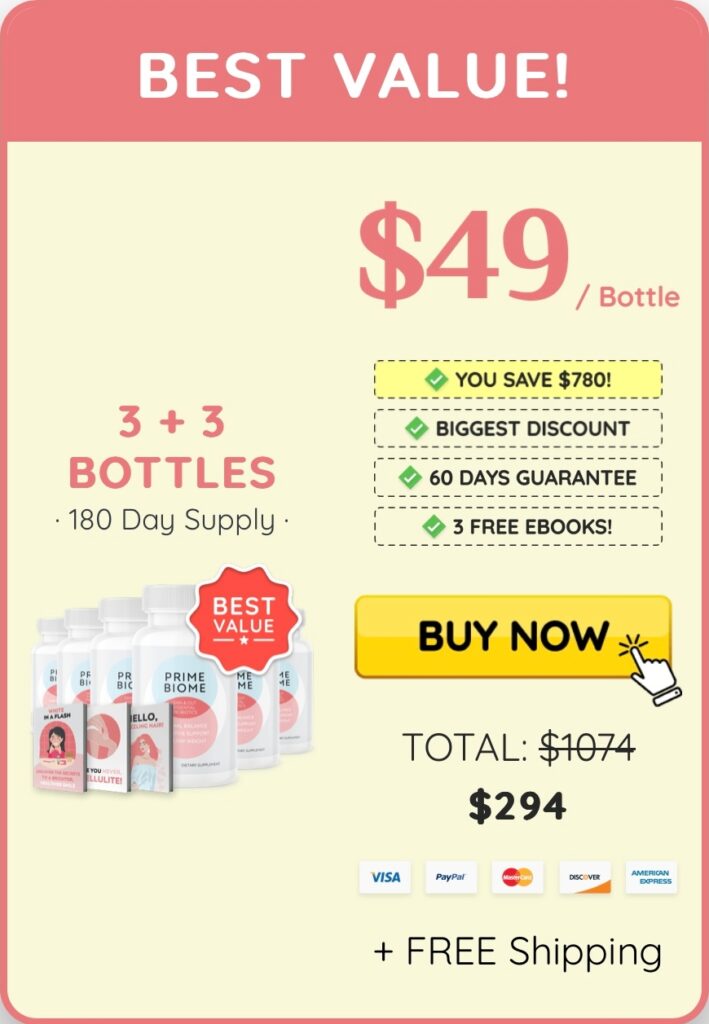 When considering food supplements, price is a decisive factor – and Prime Biome stands out by offering a powerful combination of affordability, quality and proven results. It is currently available at up to 72% off, making this the best time to secure your treatment at a much more affordable price.